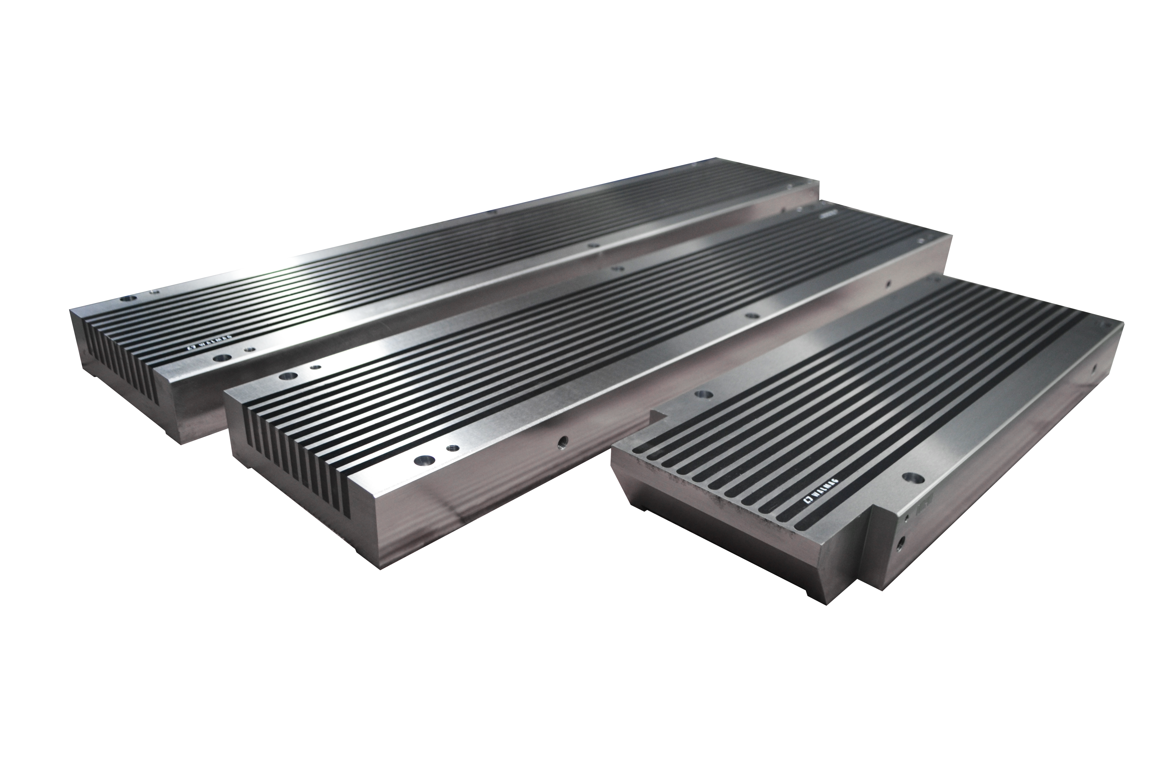 Permanentní magnetické bloky jsou dodávány v rozměrech a s upínací silou podle požadavků zákazníka. Tyto bloky se používají pod dopravními pásy odjehlovacích strojů, kde zajišťují spolehlivé a pevné upnutí materiálu během procesu odjehlování.